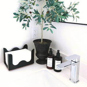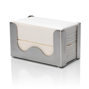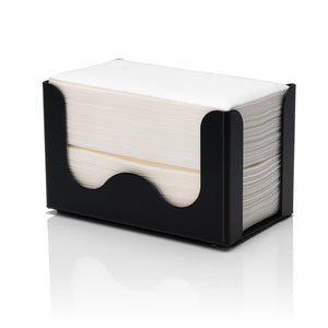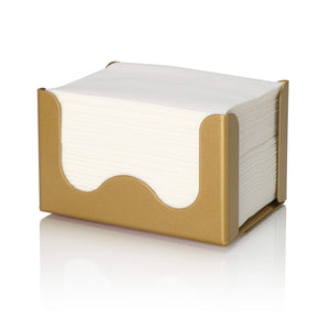 This unique hand towel holder in either a classic chrome, stylish satin black, unique gold, or simplistic white finish is adjustable to take various pick-up hand towel sizes. When folded: 200mm width x 120mm - 150mm depth. Hygienic hand-drying for guest bathrooms, powder rooms or special-event venues.....any bathroom basically to help eliminate that wet, dirty guest hand towel that is used repeatedly, ultimately harbouring bacteria. A sleek and simple design that can be positioned directly onto counter tops or wall mounted.